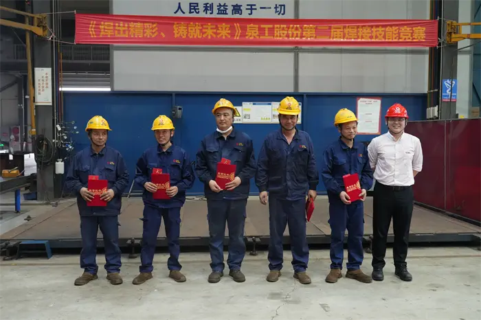 A verseny vége felé közeledett, Fu Binghuang úr, a cég elnöke beszédet mondott. Elmondta: A Quangong Co., Ltd. 2. hegesztői készségversenyének 2025-ös sikeres lebonyolítása megalapozta a vállalat kiváló képzettségű hegesztőinek kiművelését, valamint egy bemutatóplatformot épített az alkalmazottak számára a technológia cseréjére és tudásuk bemutatására. Teljes mértékben átadta a készségfejlesztők tipikus demonstrációs szerepét, amely alkalmas arra, hogy megfelelő ideológiai orientációval, első osztályú termékgyártási minőséggel és gyakorlati működési színvonallal rendelkező, magas színvonalú tehetségekből álló csapatot hozzanak létre, ezáltal átfogóan erősítve a vállalat alapvető versenyképességét, elősegítve a vállalat gyorsabb és jobb stratégiai fejlődését, jobb életvitelre törekvő!