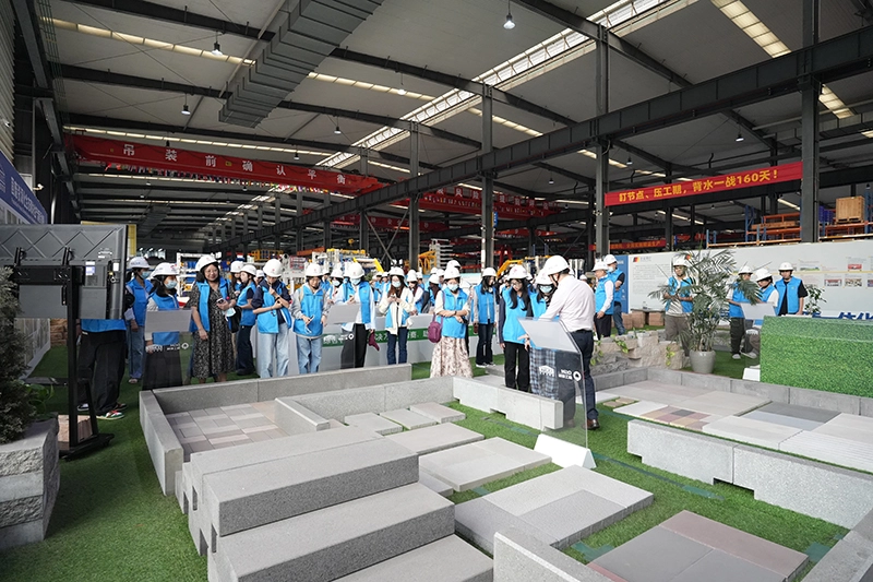 A berendezésgyártó műhelyben a látogatók megtekintették a Quangong Machinery téglagyártó gépeivel gyártott termékek különböző specifikációit és alkalmazási területeit, beleértve a faltömböket, térköveket, árvízvédelmi anyagokat, ökológiai lejtővédelmet, gravitációs támfalakat. A kiállítási területen, laboratóriumban, összeszerelő műhelyben és hibakereső műhelyben a látogatók megismerkedhettek a cég termékgyártási folyamatával.