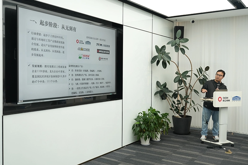A konferenciateremben a Quanzhou Városi Ipari és Informatikai Iroda Berendezési Részlegének munkatársai ismertették Quanzhou berendezésgyártó iparának alaphelyzetét, fejlődéstörténetét és jövőbeli kilátásait; bemutatták a Quanzhou Machinery Industry Co., Ltd. reklámvideóját is.