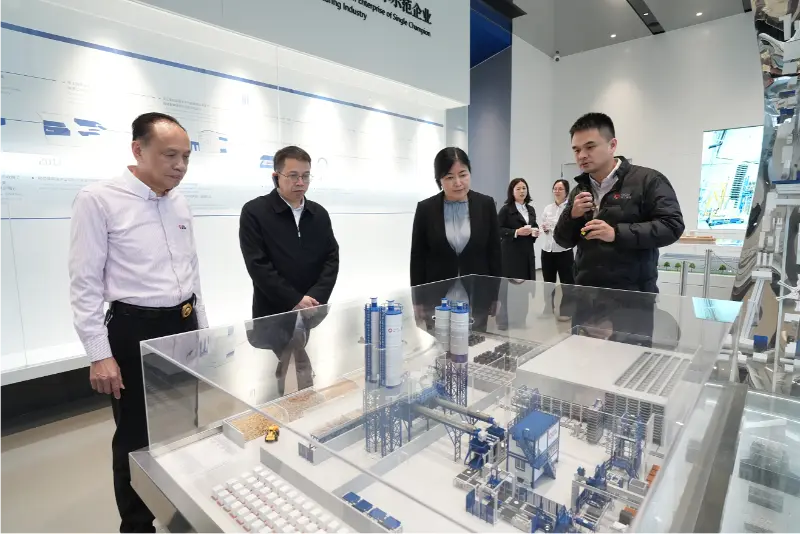 A téglamintákat bemutató területen Liu Min úr és delegációja különféle környezetbarát és praktikus téglamintákat vizsgált meg, miközben előadásokat hallgatott a termékgyártási folyamatokról és az alkalmazási forgatókönyvekről. Elismerték a Quangong Machinery Co., Ltd.-t a zöld fejlesztés iránti elkötelezettségéért és a szilárd hulladékok erőforrás-hatékony hasznosítását elősegítő kezdeményezéseiért, amelyek arra ösztönzik a vállalatot, hogy még több olyan terméket fejlesszen ki, amely megfelel a kormányzati politikának és a piaci igényeknek.