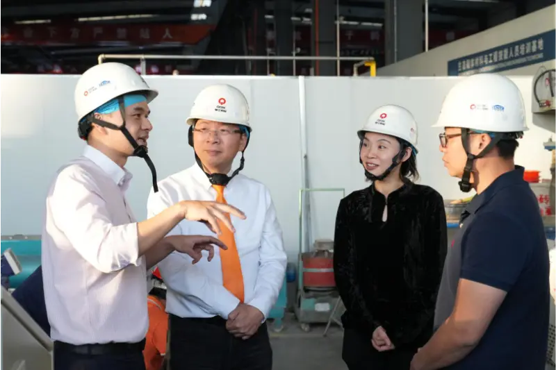 Fu Xinyuan, a Quangong Machinery Co., Ltd. vezérigazgatója kíséretében a delegáció meglátogatta a vállalat termékkiállítási központját, az intelligens berendezések gyártósorát és a felhőalapú vezérlési szolgáltatási platformot. A műhelyen belül hatékonyan működött a ZN2000-2C intelligens zagytéglagyártó gyártósor. A "szuperdinamikus" szervo vibrációs rendszeren és az intelligens felhőszolgáltatási rendszeren keresztül zagyhegyeket alakít át nagy hozzáadott értékű építőelemekké, teljes digitális felügyeletet, valamint távoli üzemeltetést és karbantartást biztosítva.