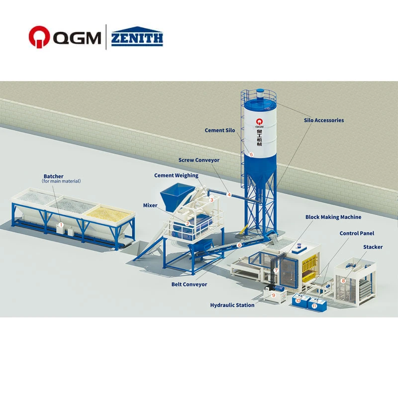 Az automatikus blokkgyártó gép egy olyan gép, amelyet elsősorban új falanyag-blokkok gyártására használnak, amely a téglagyártó berendezések egyike. Az Automatic Block Making Machine által gyártott termékek különféle új falanyagokká dolgozhatók fel olyan ipari hulladékanyagok felhasználásával, mint például homok, kő, pernye, szénsalak, széngumi, zagysalak, keramzit, perlit stb. Az Automatic Block Making Machine teljesen automatikus PLC vezérlőrendszert alkalmaz interaktív ember-gép interfésszel. A vezérlőrendszer biztonságos logikai vezérléssel van konfigurálva, és rendelkezik gyártási programmal és hibadiagnosztikai kijelző funkciókkal. Javítja a termelés hatékonyságát és csökkenti a kézi beavatkozás szükségességét, így a teljes gyártási folyamat intelligensebbé és automatizáltabbá válik. Különböző formák cseréjével az Automatikus blokkgyártó gép különböző specifikációjú és formájú falblokkokat tud előállítani, beleértve, de nem kizárólagosan, porózus téglákat, üreges blokkokat, szegélyköveket, járdatéglákat, fűtéglákat, sakktáblás téglákat és egyéb cementtermékeket.